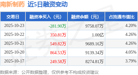 证券之星消息,10月23日,南新制药(688189)融资买入493.06万元,融资偿还774.96万元,融资净卖出281.9万元,融资余额9758.07万元。