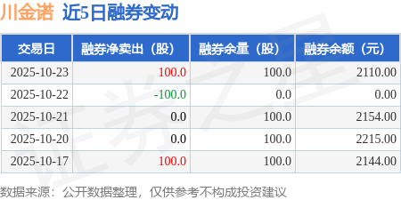 证券之星消息,10月23日,川金诺(300505)融资买入3372.67万元,融资偿还3824.12万元,融资净卖出451.44万元,融资余额3.83亿元。