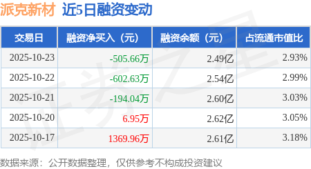 证券之星消息,10月23日,派克新材(605123)融资买入1109.5万元,融资偿还1615.16万元,融资净卖出505.66万元,融资余额2.49亿元。