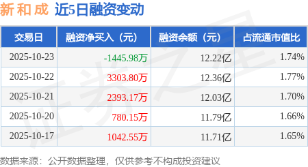 证券之星消息,10月23日,新 和 成(002001)融资买入3172.76万元,融资偿还4618.74万元,融资净卖出1445.98万元,融资余额12.22亿元,近20个交易日中有13个交易日出现融资净买入。