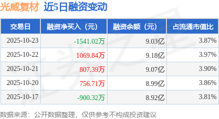 证券之星消息,10月23日,光威复材(300699)融资买入2624.88万元,融资偿还4165.89万元,融资净卖出1541.02万元,融资余额9.03亿元。