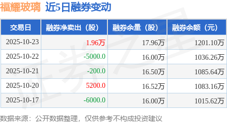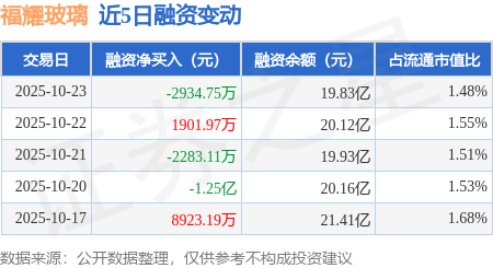 证券之星消息,10月23日,福耀玻璃(600660)融资买入3516.71万元,融资偿还6451.46万元,融资净卖出2934.75万元,融资余额19.83亿元。