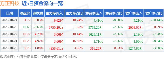 10月24日的资金流向数据方面,主力资金净流入9.62亿元,占总成交额18.74%,游资资金净流出4.41亿元,占总成交额8.6%,散户资金净流出5.21亿元,占总成交额10.14%。