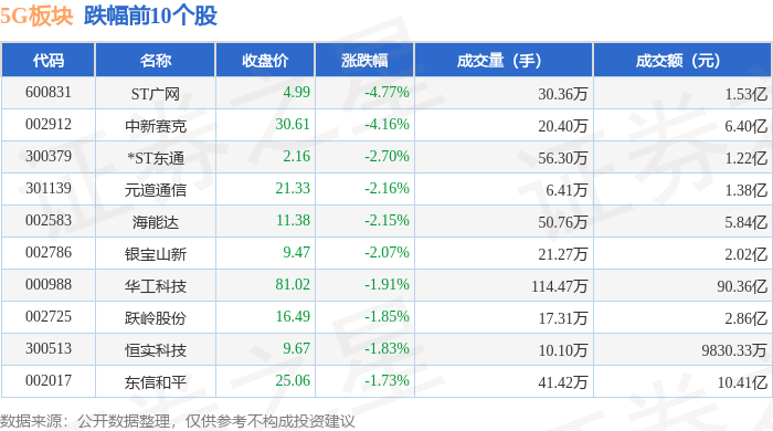 从资金流向上来看,当日5G板块主力资金净流入75.07亿元,游资资金净流出48.97亿元,散户资金净流出26.1亿元。5G板块个股资金流向见下表: