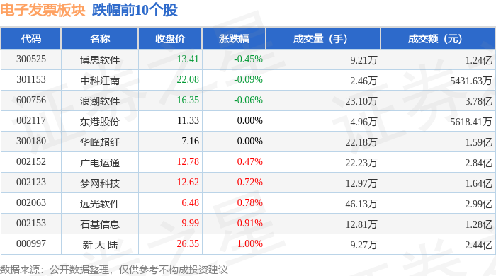 从资金流向上来看,当日电子发票板块主力资金净流入11.42亿元,游资资金净流出5.02亿元,散户资金净流出6.4亿元。电子发票板块个股资金流向见下表: