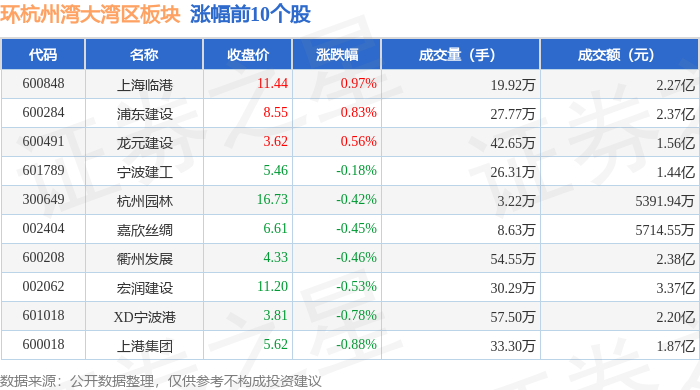 从资金流向上来看,当日环杭州湾大湾区板块主力资金净流出4239.21万元,游资资金净流入1613.2万元,散户资金净流入2626.0万元。环杭州湾大湾区板块个股资金流向见下表: