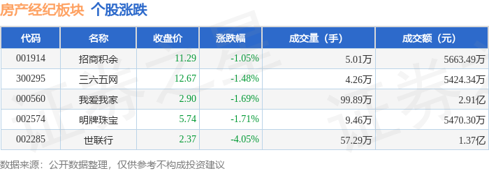 从资金流向上来看,当日房产经纪板块主力资金净流出5373.32万元,游资资金净流入2901.34万元,散户资金净流入2471.98万元。房产经纪板块个股资金流向见下表:
