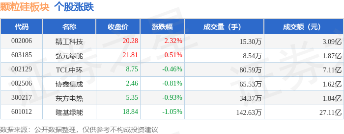 从资金流向上来看,当日颗粒硅板块主力资金净流出3.64亿元,游资资金净流入1.16亿元,散户资金净流入2.48亿元。颗粒硅板块个股资金流向见下表: