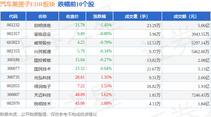 从资金流向上来看,当日汽车黑匣子EDR板块主力资金净流入4.32亿元,游资资金净流出9257.04万元,散户资金净流出3.4亿元。汽车黑匣子EDR板块个股资金流向见下表: