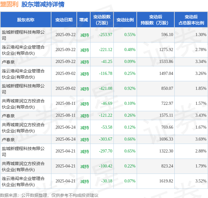 该股近半年内有股东持股变动,合计净减持2007.66万股,股东增减持明细如下表: