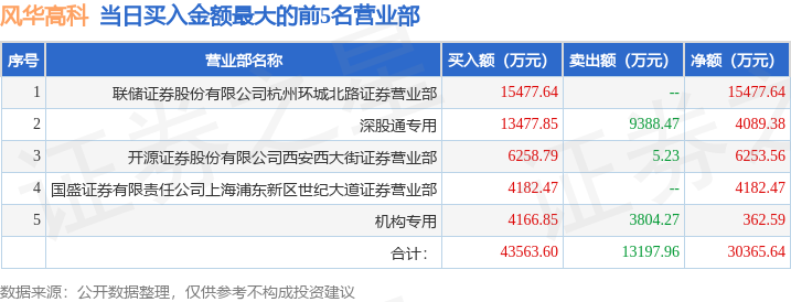证券之星消息,沪深交易所2025年10月24日公布的交易公开信息显示,风华高科(000636)因日涨幅偏离值达到7%的前5只证券登上龙虎榜。此次是近5个交易日内第1次上榜。