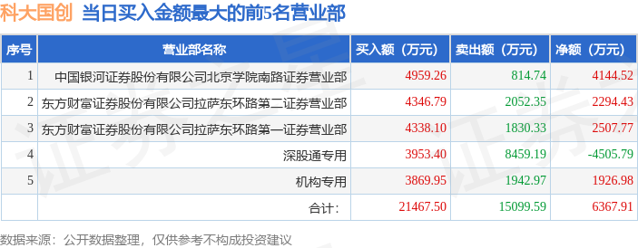 证券之星消息,沪深交易所2025年10月24日公布的交易公开信息显示,科大国创(300520)因日换手率达到30%的前5只证券登上龙虎榜。此次是近5个交易日内第2次上榜。
