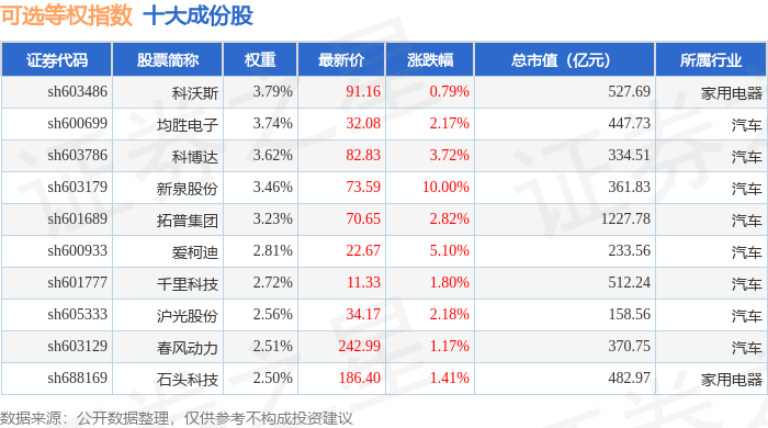 可选等权(000073)指数十大成份股详情如下: