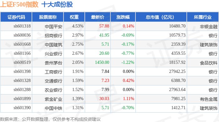 上证F500(000100)指数十大成份股详情如下: