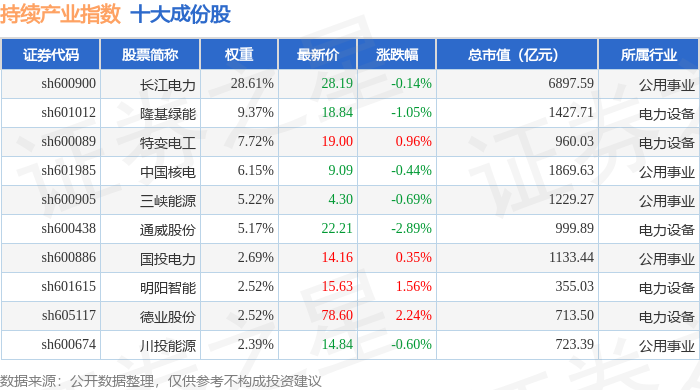 证券之星消息,10月24日,持续产业(000114)指数报收于1243.94点,跌0.22%,成交231.4亿元,换手率0.87%。当日该指数成份股中,上涨的有14家,聚和材料以5.62%的涨幅领涨,下跌的有26家,双良节能以3.69%的跌幅领跌。