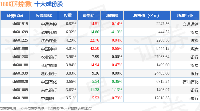 180红利(000149)指数十大成份股详情如下: