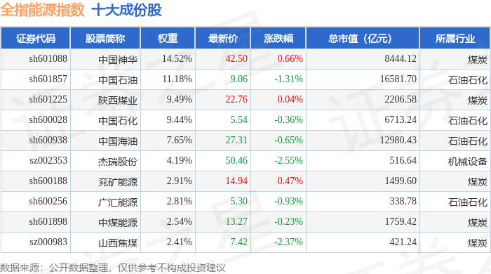 全指能源(000986)指数十大成份股详情如下: