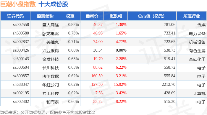 巨潮小盘(399316)指数十大成份股详情如下: