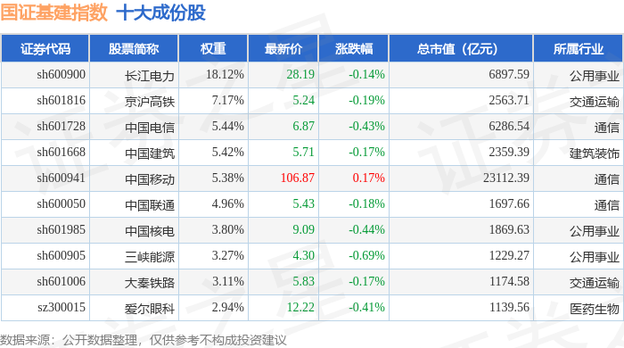 国证基建(399359)指数十大成份股详情如下: