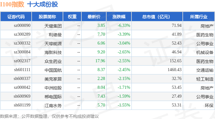 I100(399415)指数十大成份股详情如下: