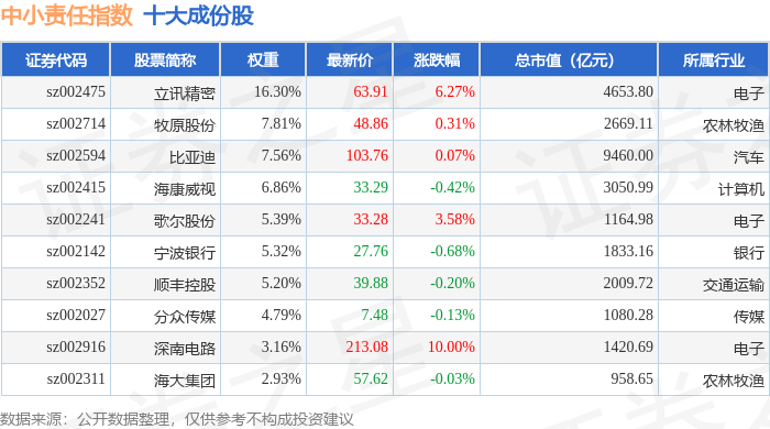证券之星消息,10月24日,中小责任(399651)指数报收于1774.69点,涨1.8%,成交512.04亿元,换手率1.53%。当日该指数成份股中,上涨的有25家,深南电路以10.0%的涨幅领涨,下跌的有25家,新乳业以2.9%的跌幅领跌。