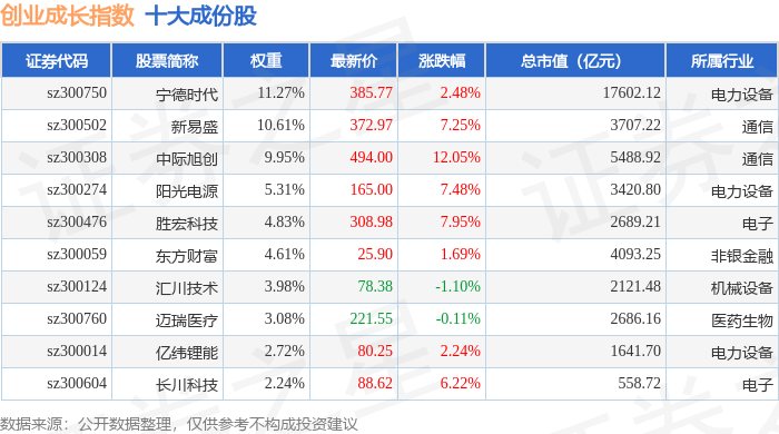 证券之星消息,10月24日,创业成长(399667)指数报收于5363.9点,涨4.48%,成交1711.48亿元,换手率2.54%。当日该指数成份股中,上涨的有42家,中际旭创以12.05%的涨幅领涨,下跌的有7家,光线传媒以1.19%的跌幅领跌。