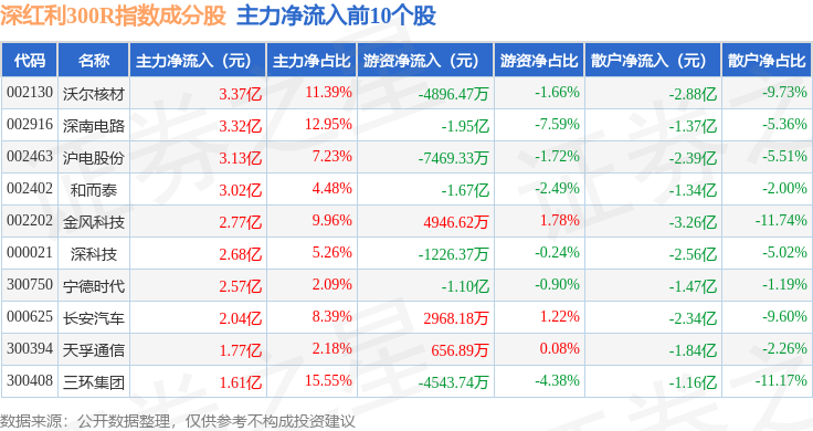 资金流向方面,深红利300R(470062)指数成份股当日主力资金净流入合计13.06亿元,游资资金净流出合计6.0亿元,散户资金净流出合计7.06亿元。成份股资金流向详情见下表: