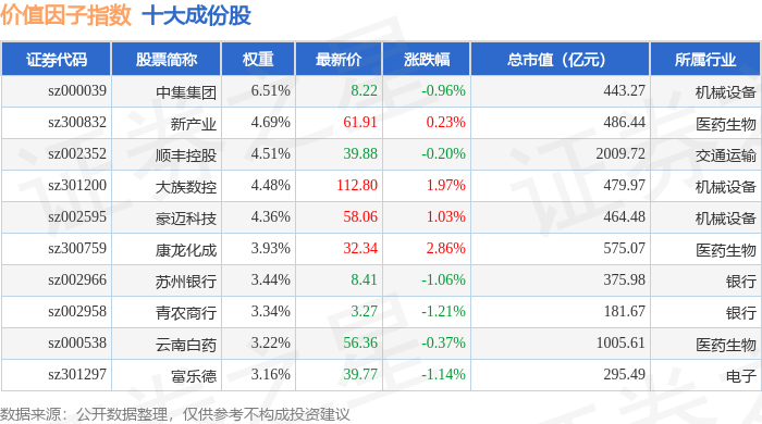 证券之星消息,10月24日,价值因子(980056)指数报收于2535.04点,涨0.36%,成交378.12亿元,换手率1.04%。当日该指数成份股中,上涨的有27家,大金重工以7.02%的涨幅领涨,下跌的有23家,珠江啤酒以5.23%的跌幅领跌。