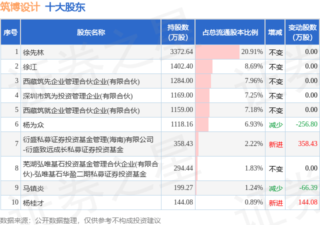 根据筑博设计2025年中报公布的十大股东详情如下:
