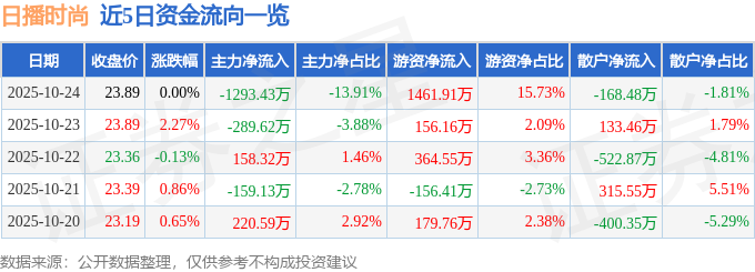 10月24日的资金流向数据方面,主力资金净流出1293.43万元,占总成交额13.91%,游资资金净流入1461.91万元,占总成交额15.73%,散户资金净流出168.48万元,占总成交额1.81%。