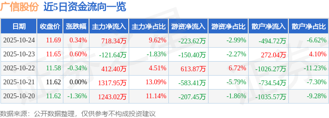 10月24日的资金流向数据方面,主力资金净流入718.34万元,占总成交额9.62%,游资资金净流出223.62万元,占总成交额2.99%,散户资金净流出494.72万元,占总成交额6.62%。