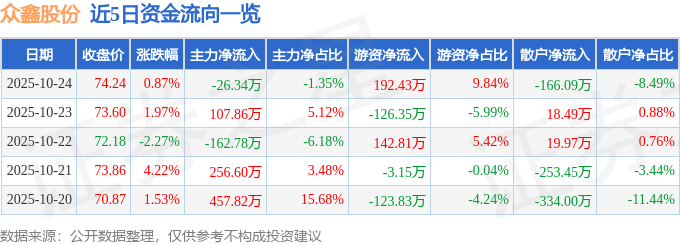 近5日资金流向一览见下表: