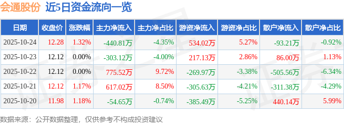 证券之星消息,截至2025年10月24日收盘,会通股份(688219)报收于12.28元,上涨1.32%,换手率1.5%,成交量8.27万手,成交额1.01亿元。