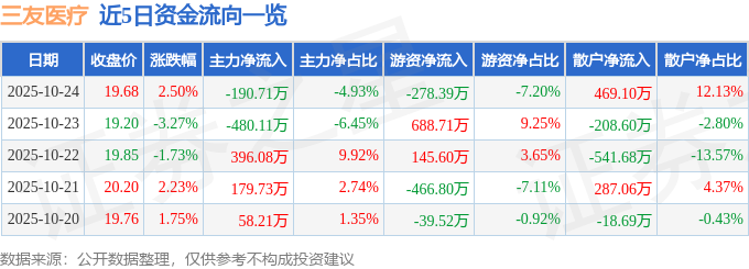 证券之星消息,截至2025年10月24日收盘,三友医疗(688085)报收于19.68元,上涨2.5%,换手率0.63%,成交量1.97万手,成交额3866.28万元。
