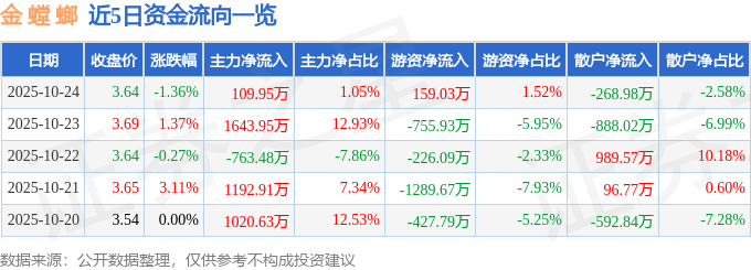 10月24日的资金流向数据方面,主力资金净流入109.95万元,占总成交额1.05%,游资资金净流入159.03万元,占总成交额1.52%,散户资金净流出268.98万元,占总成交额2.58%。