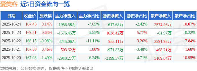 证券之星消息,截至2025年10月24日收盘,爱美客(300896)报收于167.45元,上涨0.14%,换手率0.73%,成交量1.53万手,成交额2.56亿元。