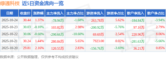 10月24日的资金流向数据方面,主力资金净流出78.94万元,占总成交额1.68%,游资资金净流入263.78万元,占总成交额5.62%,散户资金净流出184.84万元,占总成交额3.94%。