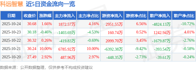 证券之星消息,截至2025年10月24日收盘,科远智慧(002380)报收于30.68元,上涨1.66%,换手率10.4%,成交量14.75万手,成交额4.5亿元。