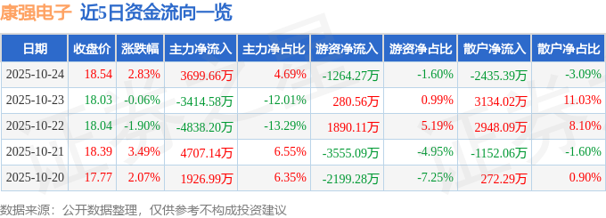 证券之星消息,截至2025年10月24日收盘,康强电子(002119)报收于18.54元,上涨2.83%,换手率11.33%,成交量42.51万手,成交额7.89亿元。