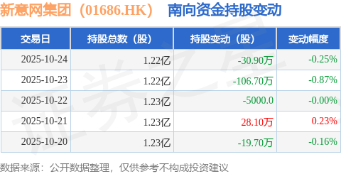 证券之星消息,10月24日南向资金减持30.9万股新意网集团(01686.HK)。近5个交易日中,获南向资金减持的有4天,累计净减持129.7万股。近20个交易日中,获南向资金减持的有11天,累计净减持202.0万股。截至目前,南向资金持有新意网集团(01686.HK)1.22亿股,占公司已发行普通股的5.15%。
