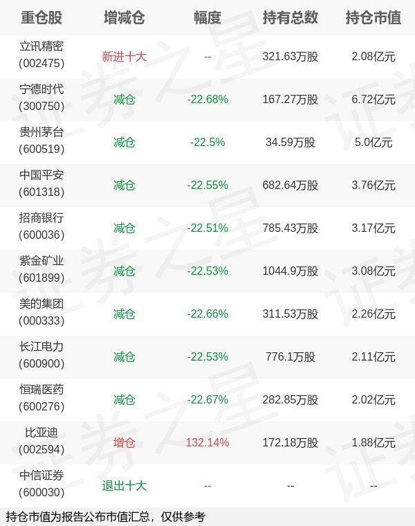 证券之星消息,10月25日平安基金旗下钱晶 李严管理的平安中证A50交易型开放式指数基金公布三季报,近1年净值增长率16.91%。与上一季度相比,该基金前十大重仓股新增立讯精密;其中宁德时代持仓占比11.08%,为该基金第一大重仓股;中信证券等退出前十大重仓股;详细数据如下:
