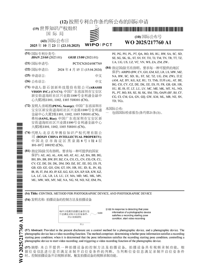 证券之星消息,根据企查查数据显示影石创新(688775)公布了一项国际专利申请,专利名为“拍摄设备的控制方法及拍摄设备”,专利申请号为PCT/CN2024/087769,国际公布日为2025年10月23日。