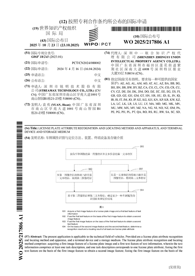 证券之星消息,根据企查查数据显示锐明技术(002970)公布了一项国际专利申请,专利名为“车牌属性识别与定位方法、装置、终端设备及存储介质”,专利申请号为PCT/CN2024/088002,国际公布日为2025年10月23日。