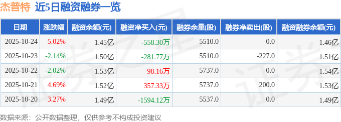 杰普特融资融券信息显示,融资方面,当日融资买入1532.97万元,融资偿还2091.28万元,融资净偿还558.3万元。融券方面,融券卖出0.0股,融券偿还0.0股,融券余量5510.0股,融券余额79.28万元。融资融券余额1.46亿元。