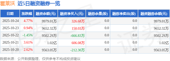 证券之星消息,截至2025年10月24日收盘,霍莱沃(688682)报收于33.8元,上涨4.77%,换手率4.05%,成交量4.12万手,成交额1.4亿元。