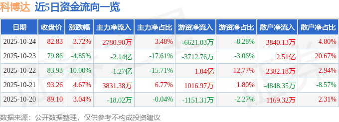 10月24日的资金流向数据方面,主力资金净流入2780.9万元,占总成交额3.48%,游资资金净流出6621.03万元,占总成交额8.28%,散户资金净流入3840.13万元,占总成交额4.8%。