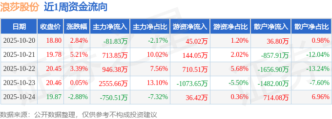 资金流向数据方面,本周浪莎股份主力资金合计净流入3383.57万元,游资资金合计净流出137.64万元,散户资金合计净流出3245.92万元。本周资金流向一览见下表: