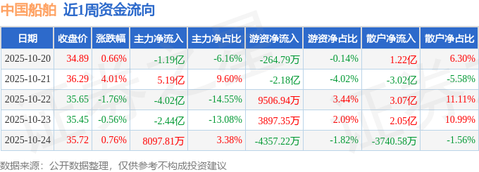 沪深股通持股方面,截止2025年10月24日收盘,中国船舶沪股通持股数为1.75亿股,占流通股比为390.0%。
