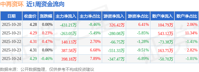 沪深股通持股方面,截止2025年10月24日收盘,中再资环沪股通持股数为1200.56万股,占流通股比为86.0%。