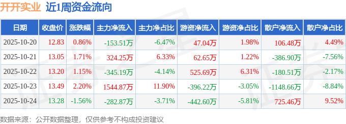 资金流向数据方面,本周开开实业主力资金合计净流入1087.55万元,游资资金合计净流出203.43万元,散户资金合计净流出884.12万元。本周资金流向一览见下表: